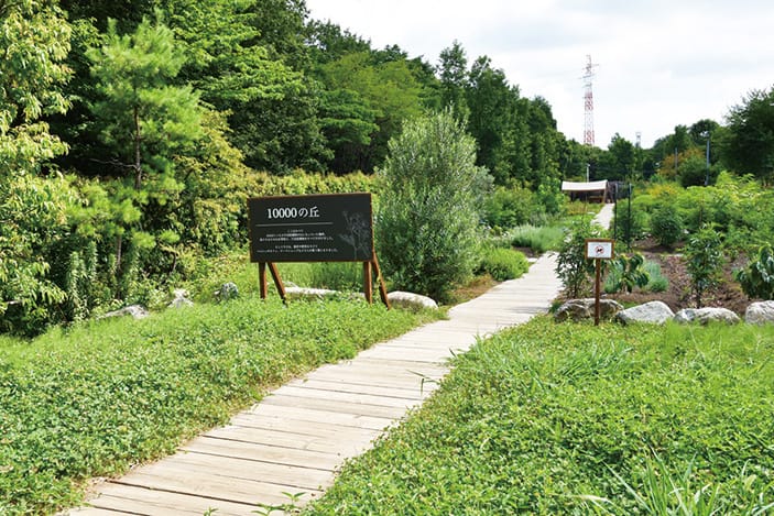 三富今昔村内の「10000の丘」と呼ばれる場所。かつてゴミの不法投棄があった場所を、和洋のハーブが育つエリアに整備した