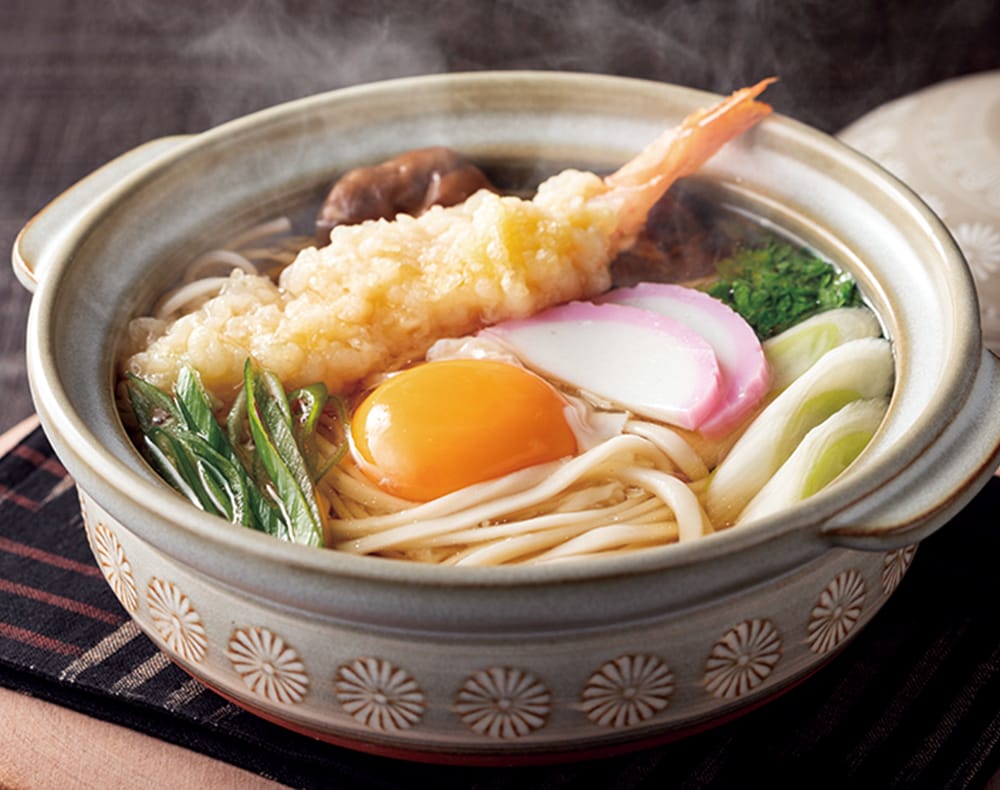 麺類や丼ものは炭水化物が中心になりがちなので、肉類や魚介類、卵のおかずをプラスしよう。例えば鍋焼きうどんなら、エビの天ぷらや卵、カマボコでたんぱく質が取れる。和定食も栄養バランスを取りやすい。