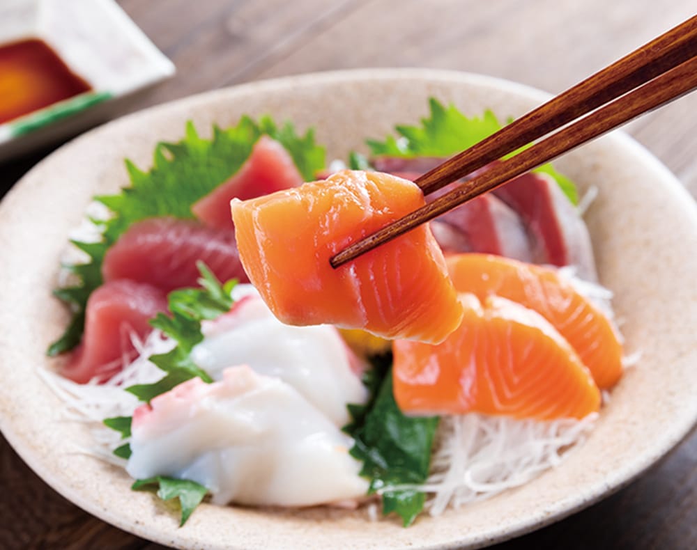 トンカツや鶏の唐揚げはもちろん、魚介類も油で揚げると摂取エネルギー量が増加する。肉類ならしゃぶしゃぶやサラダチキン、魚介類なら刺し身や煮魚と、油の使用量が少ない料理を選んで食べるようにしよう。
