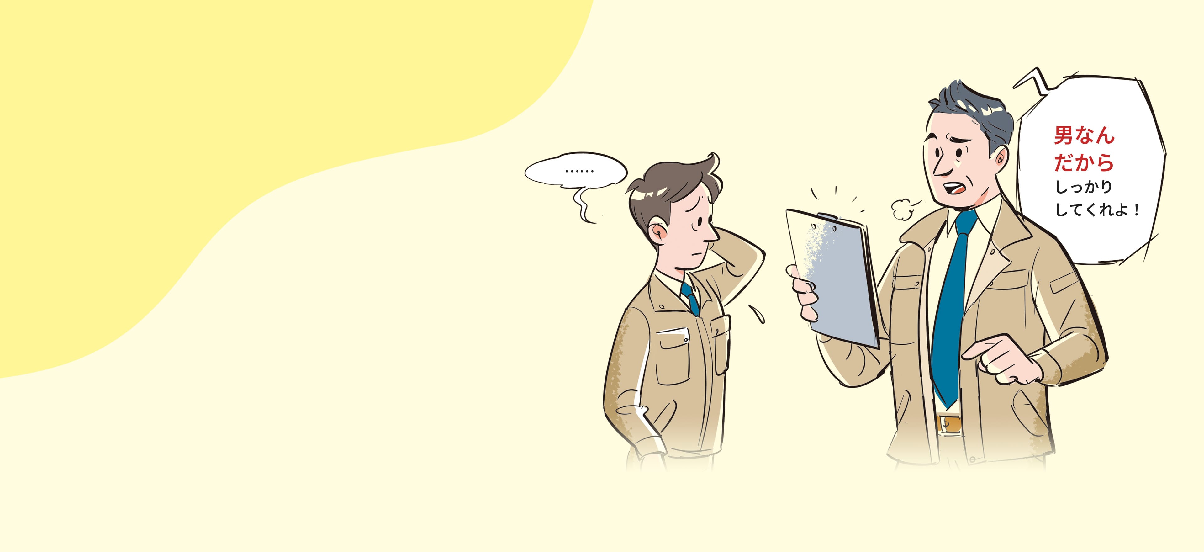 「男なんだから......」という言い方には、「男らしさ」「女らしさ」のように、性別によって相手の行動や心情を区別する考え方が含まれる。
