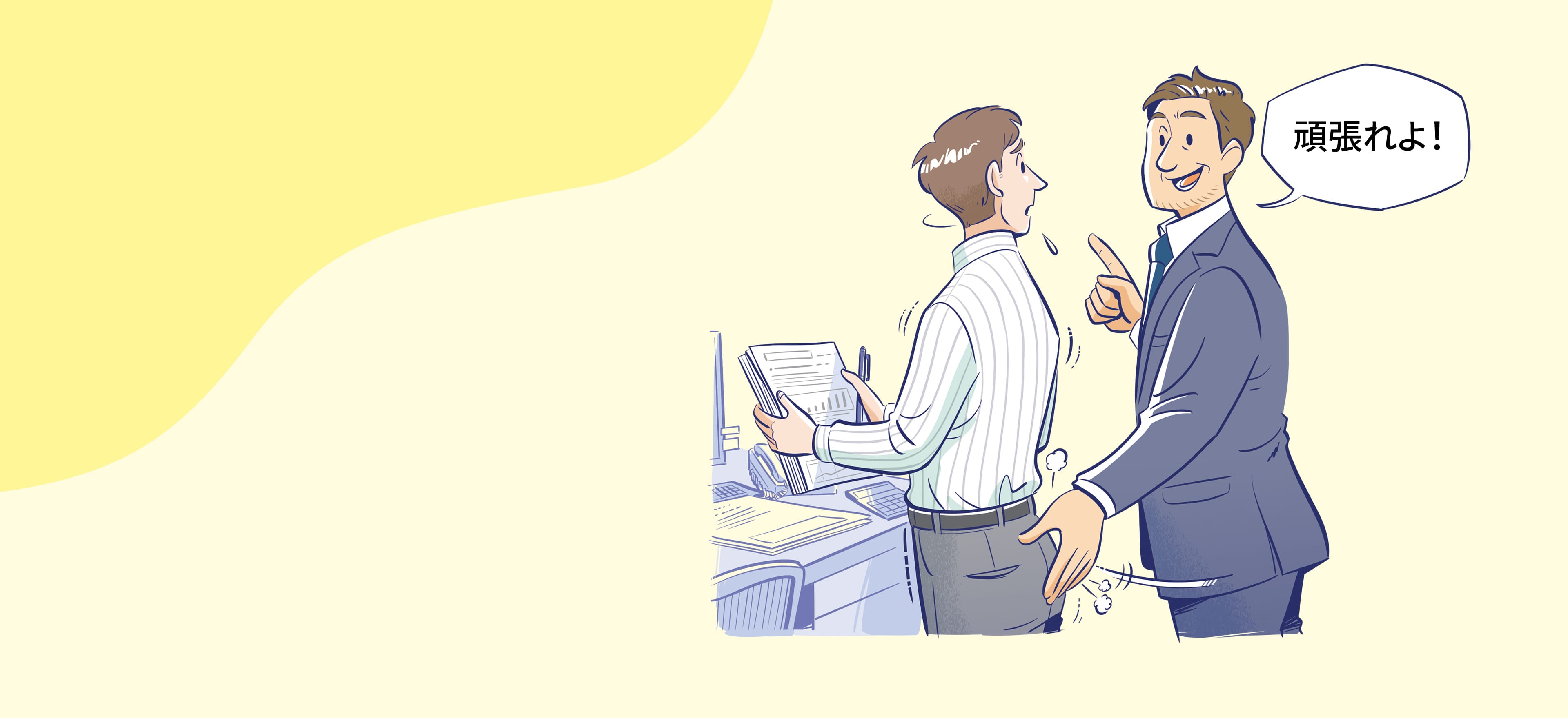 男性上司が男性従業員のお尻を軽くたたいて激励