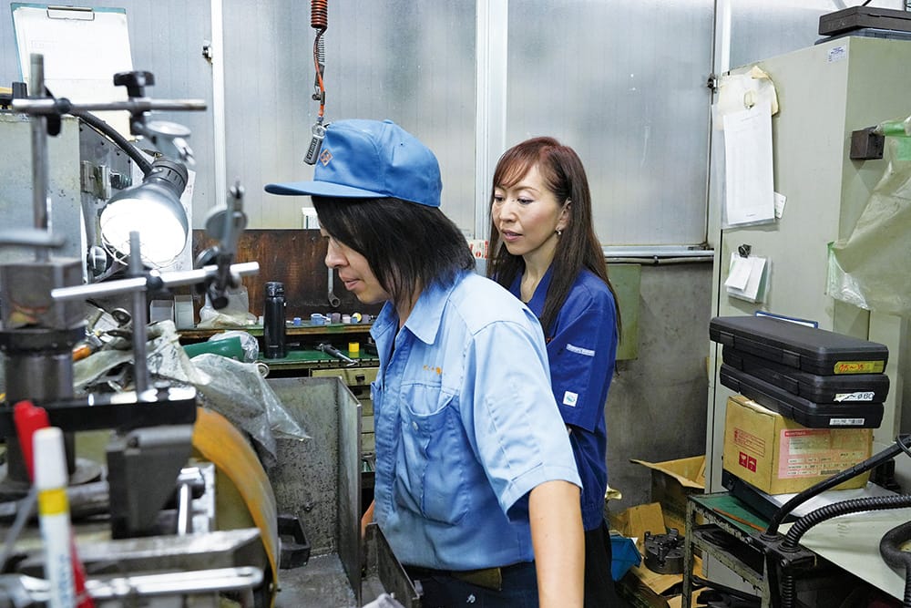 20年前、父の急逝により、思いがけずダイヤ精機を引き継ぐことになった諏訪貴子社長。会社存続のため、若手の採用と働きやすい環境づくりに注力していった結果かつては高齢化が進んでいたが、いまや20~30代の社員が半数以上を占める。