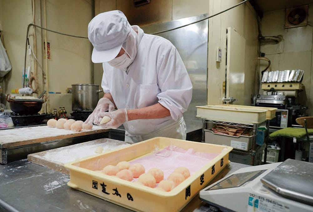 父であり、社長である榊信明氏。今も職人として和菓子作りに精を出す