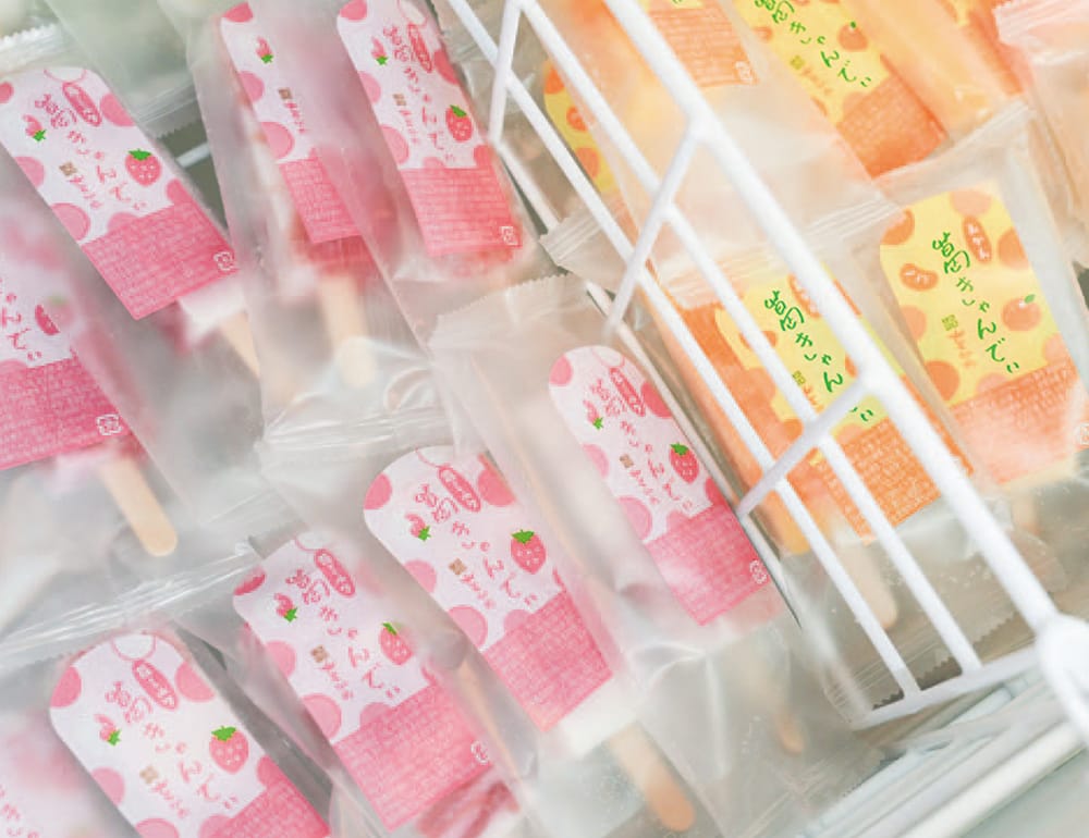 当時、17時以降に生菓子を値下げしていたのですが、お客さまがそれを待って買いに来るのを課題に感じていました。葛ゼリーも賞味期限が当日で、値下げ対象商品でした。売れずに廃棄することも多かった。そんな時、子どもの頃に葛ゼリーを凍らせて食べていたのを思い出しました。冷凍にすれば日持ちもする。「アイスにできないか」と葛粉メーカーに相談すると、「できる」と返事をもらえました。早速、試しに夏祭りで販売したところ、2日間で1000本が売れました。確かな手応えを感じ、パッケージデザインも考え、正式に商品として販売を始めました。