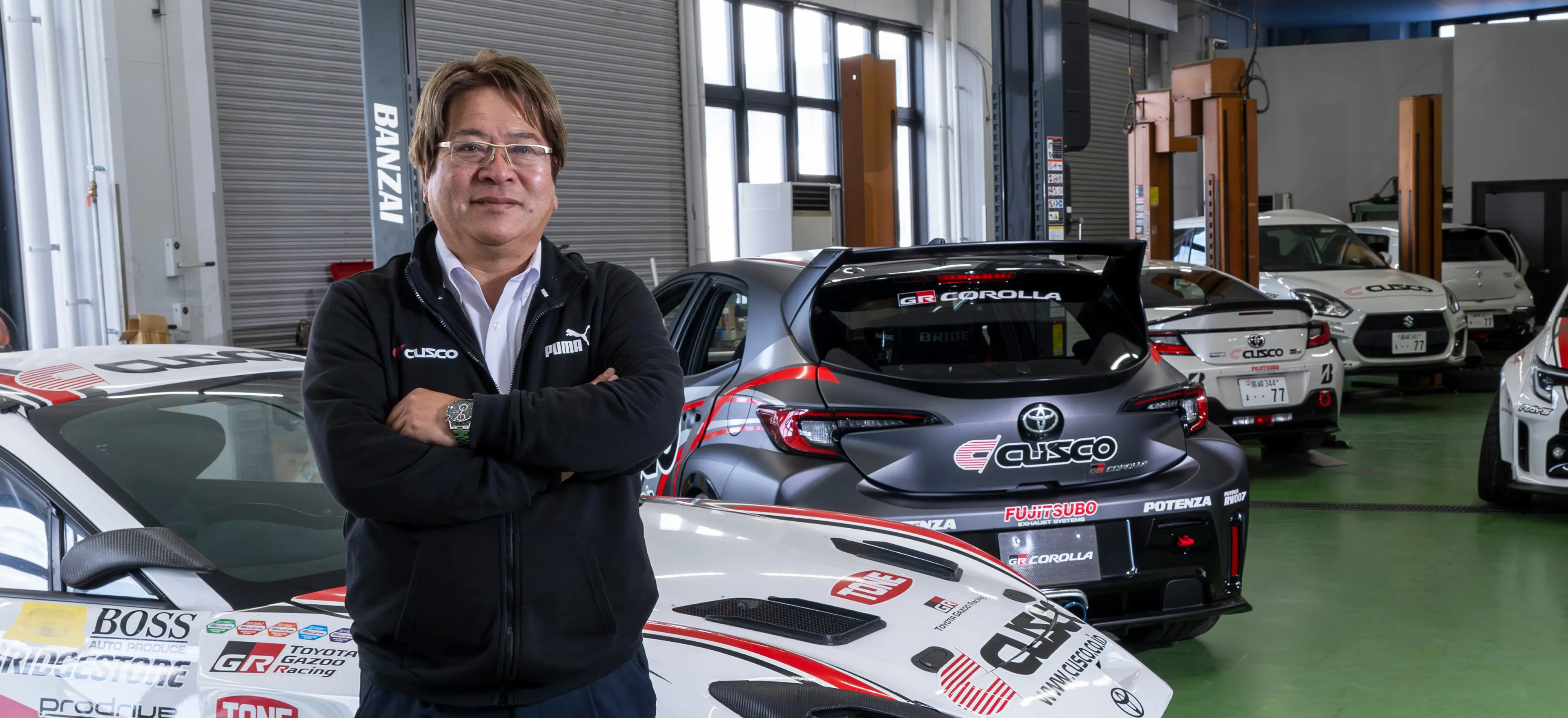 28歳でキャロッセに入社後、JAF全日本ジムカーナ選手権にドライバーとして参戦し1990年、92年、99年の3度のC1クラスシリーズチャンピオンに輝く。2009年から代表取締役社長。クスコレーシング監督としてはFIAアジア・パシフィックラリー選手権12年、13年2WD部門優勝、同年2WD部門マニュファクチャラーズタイトル、18年シリーズ総合優勝に代表される様々なタイトルを獲得。