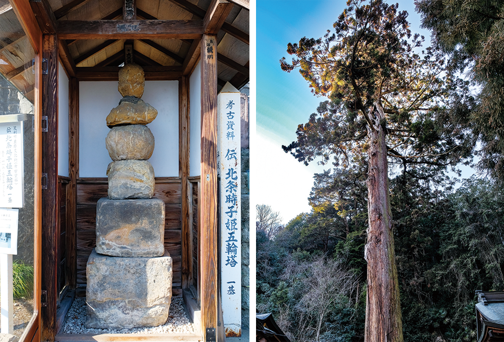 右/樺崎寺跡に残る樹齢約500年のご神木。何度も落雷に遭うも生き続け、近隣村の繁栄を見守る