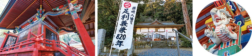 法玄寺から車で15分ほど山間部に足を延ばすと、樺崎寺跡にある樺崎八幡宮にたどり着く。樺崎寺は鑁阿寺の奥の院として義兼が創建した。義兼はここで念仏を唱えて晩年を過ごし、最期は本殿床下に生入定したという。息子の義氏が父の霊と八幡神を合祀したのが、樺崎八幡宮の始まりだ。