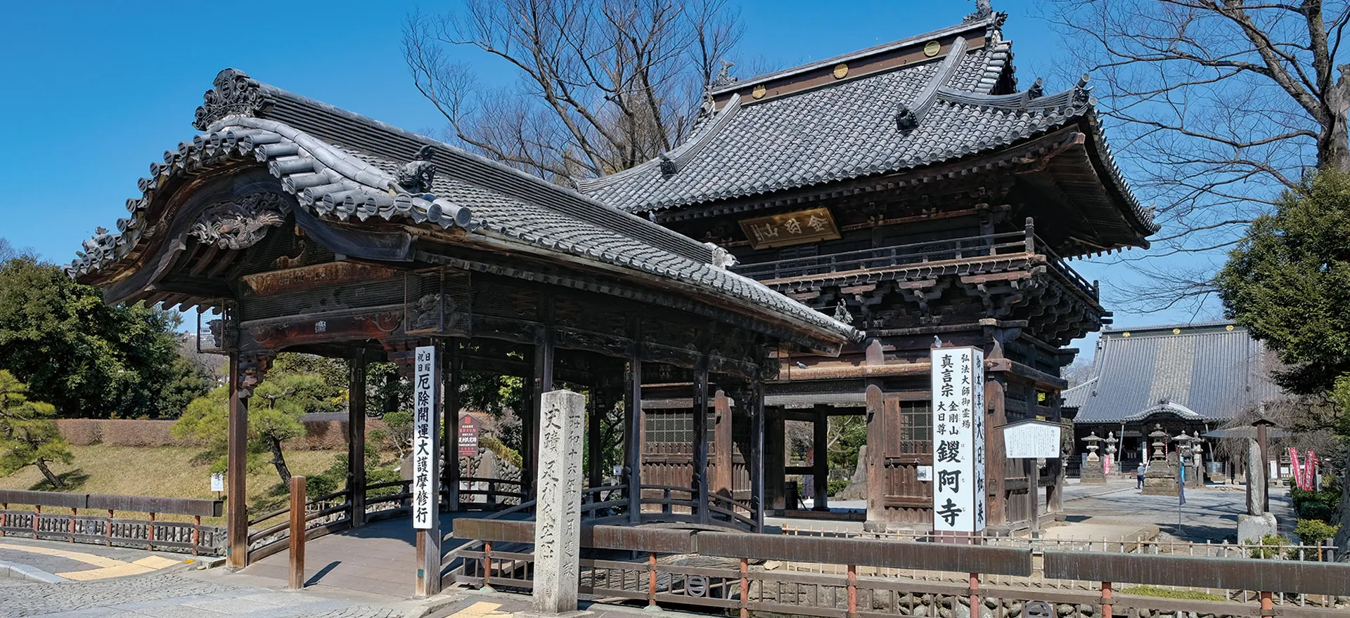 足利一族の氏寺である鑁阿寺は、鎌倉時代に義康が邸宅を構えた場所だ。境内全体が足利氏宅跡として国指定史跡となる。約4万m2もの広大な敷地面積からも、当時の足利氏の力が絶大だったとうかがえる。鑁阿寺は1196年、義兼が邸宅内に建てた持仏堂が始まりだ。足利氏の守り本尊である大日如来をまつる。"鑁阿"は晩年に出家した義兼の法名にちなむ。