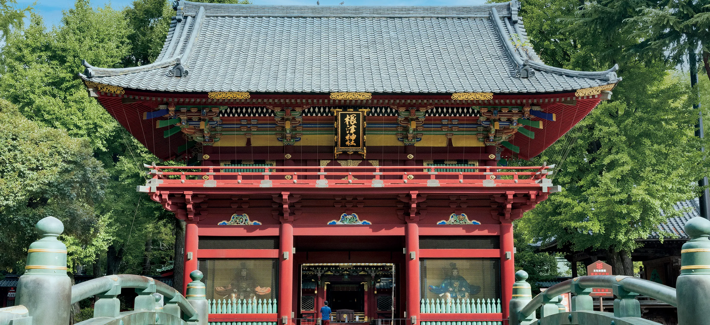 鴎外と漱石は、共に根津神社の氏子だった。根津神社は約1900年前に日本武尊によって創祀された。社殿を奉建したのは江戸城を築いた武将、太田道灌だ。5代将軍の徳川綱吉は、6代将軍家宣の屋敷地を献納し大造営を行った。1706年に完成した権現造りの本殿、幣殿、拝殿、唐門、西門、透塀、楼門は震災や戦禍を免れ、一つも欠けず現存する。7つの建造物は国の重要文化財に指定されている。