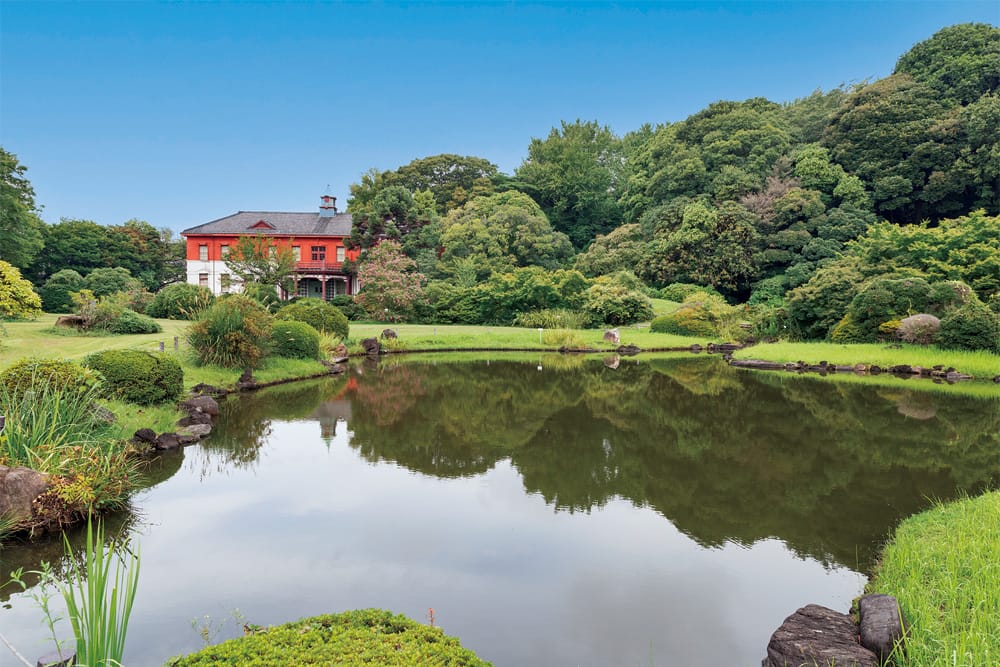 低地に広がる日本庭園は、1652年に徳川綱吉が設けた別邸、白山御殿の庭園に由来する。池のほとりに建つのは、旧東京医学校本館だ。若き鴎外も学んだ。元は1876年に東大本郷キャンパスにあったが、1911年に赤門近くに移築された。関東大震災で本郷キャンパス内のほとんどが全半壊する中、大損害を免れる。1969年に現在地に移築され、国指定重要文化財となった。