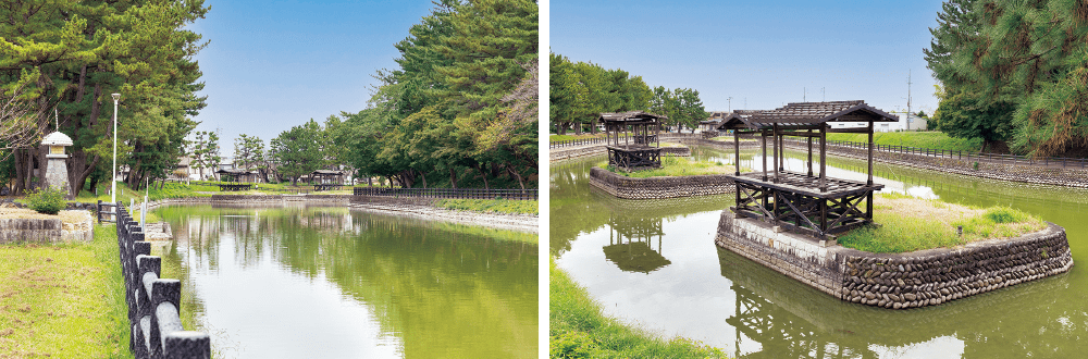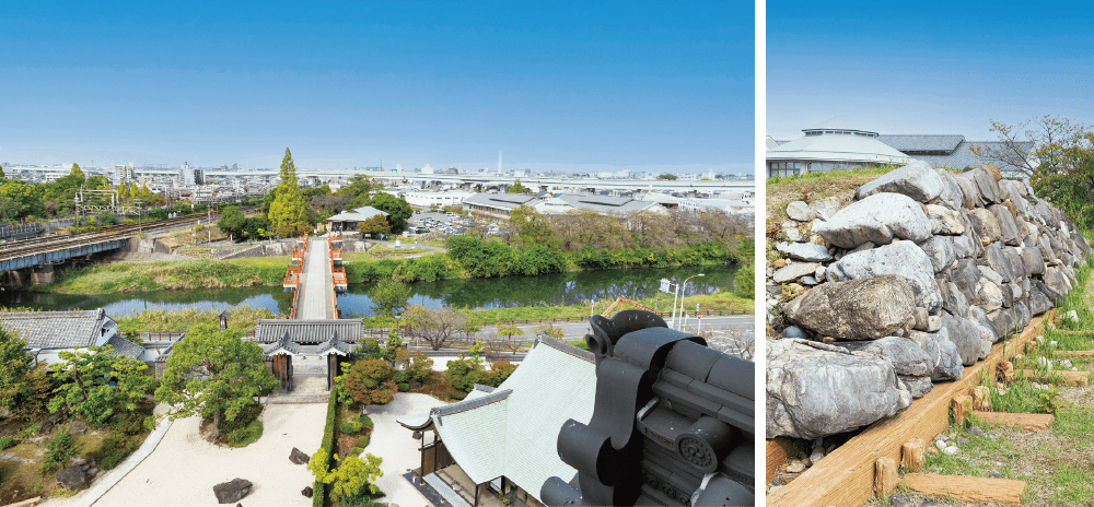 右/1610年、清洲城は廃城となった。城下の住民や石垣、建物は名古屋城下に移された。清洲古城跡公園には移設前の石垣が復元されている