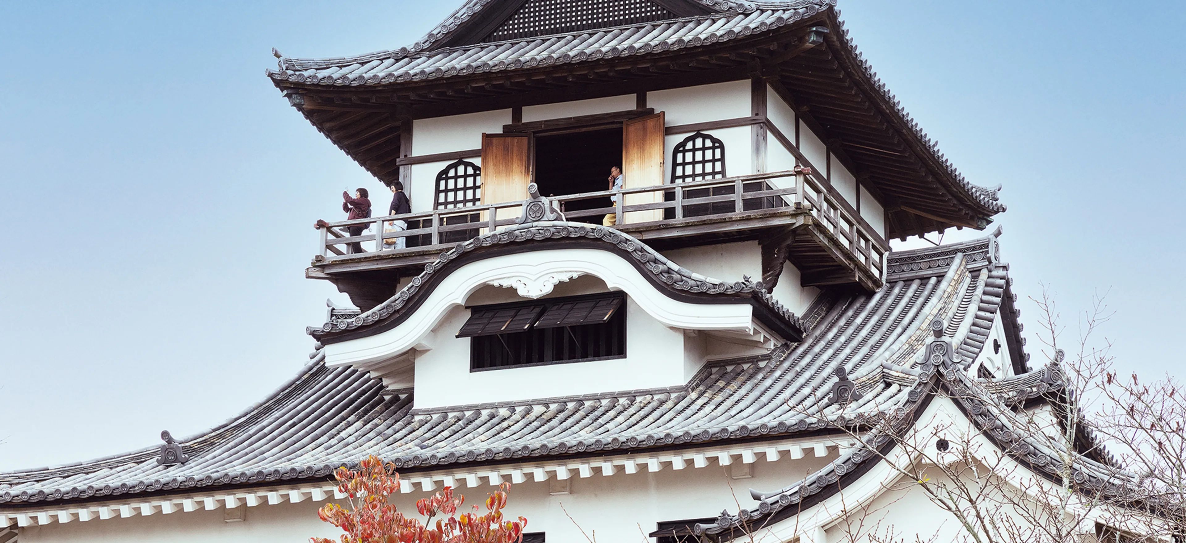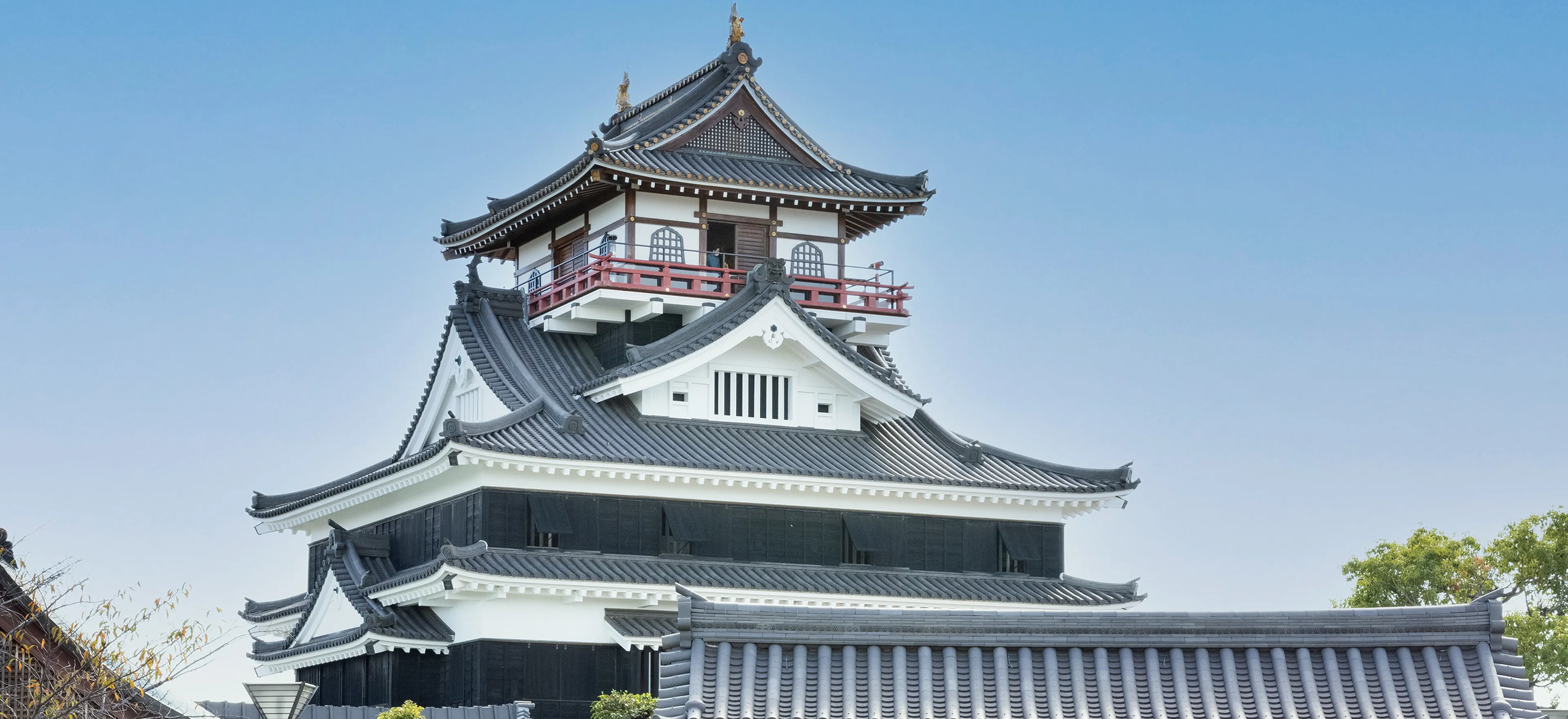 天守は現存する最古であり国宝だ。丸みを帯びた弓なりの屋根が特徴の