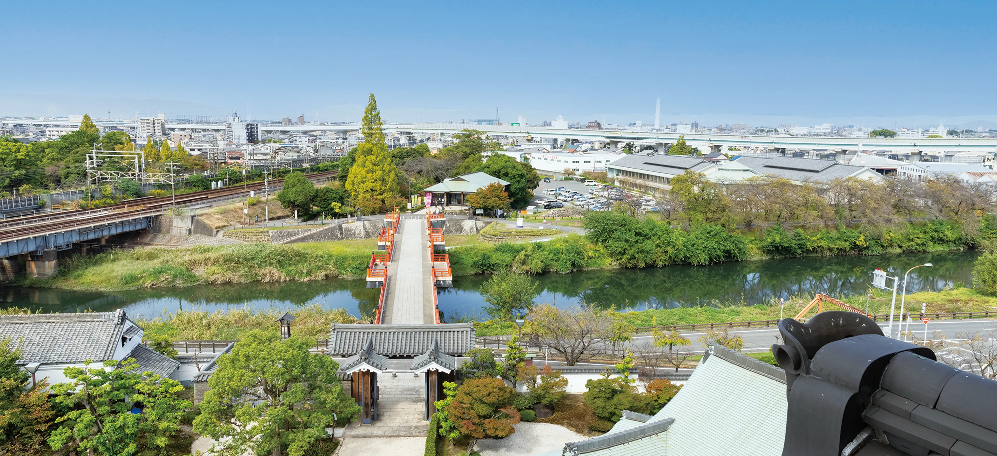 天下取りの出発点となったのは那古野城から北西7kmほどに位置する清洲城だ。現在の清洲城は、1989年に桃山時代の城をイメージして再建された模擬天守である。
