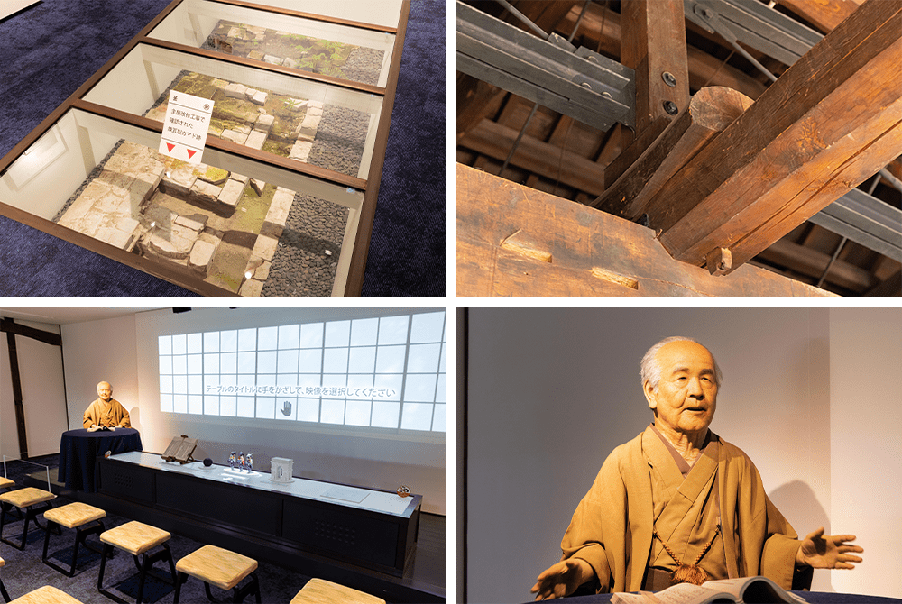 中の家には文化財としての価値を保ちながら耐震安全性を向上させる工事が施され、現在の建物は2023年に竣工した。2階では大黒柱周りの耐震補強の様子を確認できる。工事によってあらわになった煉瓦製カマド跡も見学可能だ。1階には、栄一のアンドロイドと映像を組み合わせたイマーシブ(没入型)シアターが設置されている。帰郷した80代の栄一が血洗島での思い出などを語る。