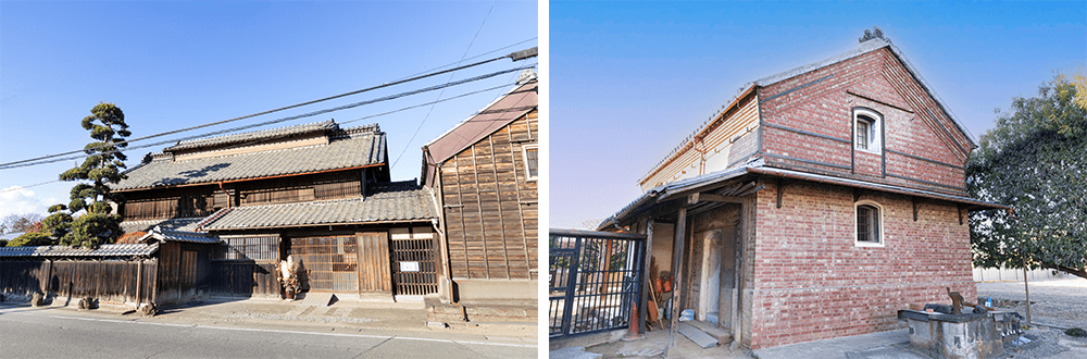 右/尾高惇忠生家の煉瓦蔵。栄一が設立に関わった日本煉瓦製造の煉瓦が使われたと伝わる