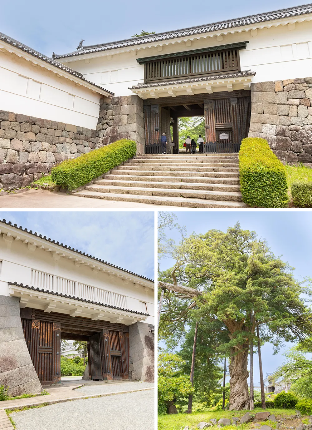 左下/二の丸の表門に当たる銅門。大扉に飾られた銅を用いた金具に由来する