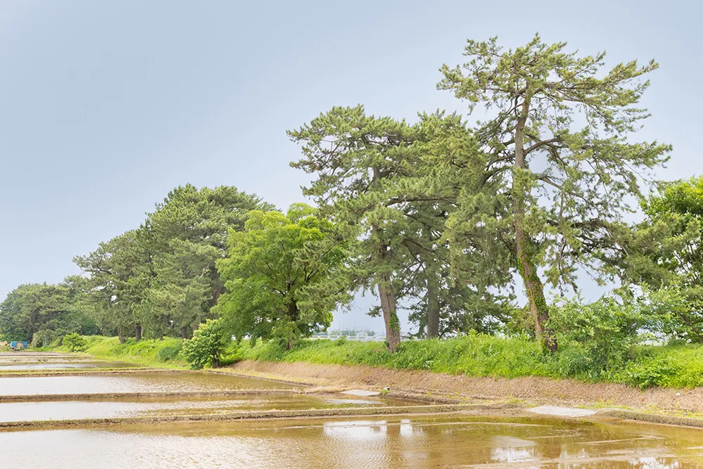酒匂川の堤防に植栽された約400本のクロマツ並木は、尊徳が植えたとの伝説がある。13歳の尊徳が、子守で得た駄賃で200本の苗を購入して植えたという。やがて並木となり、大きく根を張ったクロマツは治水に役立った。防風林としても田畑を守ってきたという。