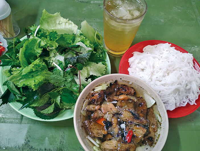 中でも定番は「ブン」を使った料理だ。北部~中部エリアで食べられる、焼いた豚肉が入った汁にブンをつけて食べる「ブンチャー」、汁麺に揚げた魚をのせた「ブンカー」、トマトベースの汁麺に揚げた豆腐をのせた「ブンジウクウ」が有名だ。地域によって調理法や味付けが異なり、タウナギ、タニシ、サワガニといった、その土地ならではの食材を活用したご当地メニューも多く存在する。